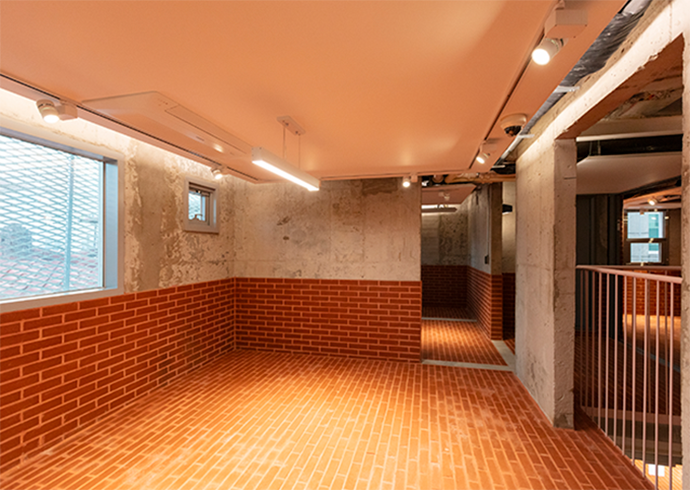 전체를 하나의 공간으로 연결하는 계단실에 공용 바닥을 일부 개방하여 공간적 통합을 이루었습니다.
